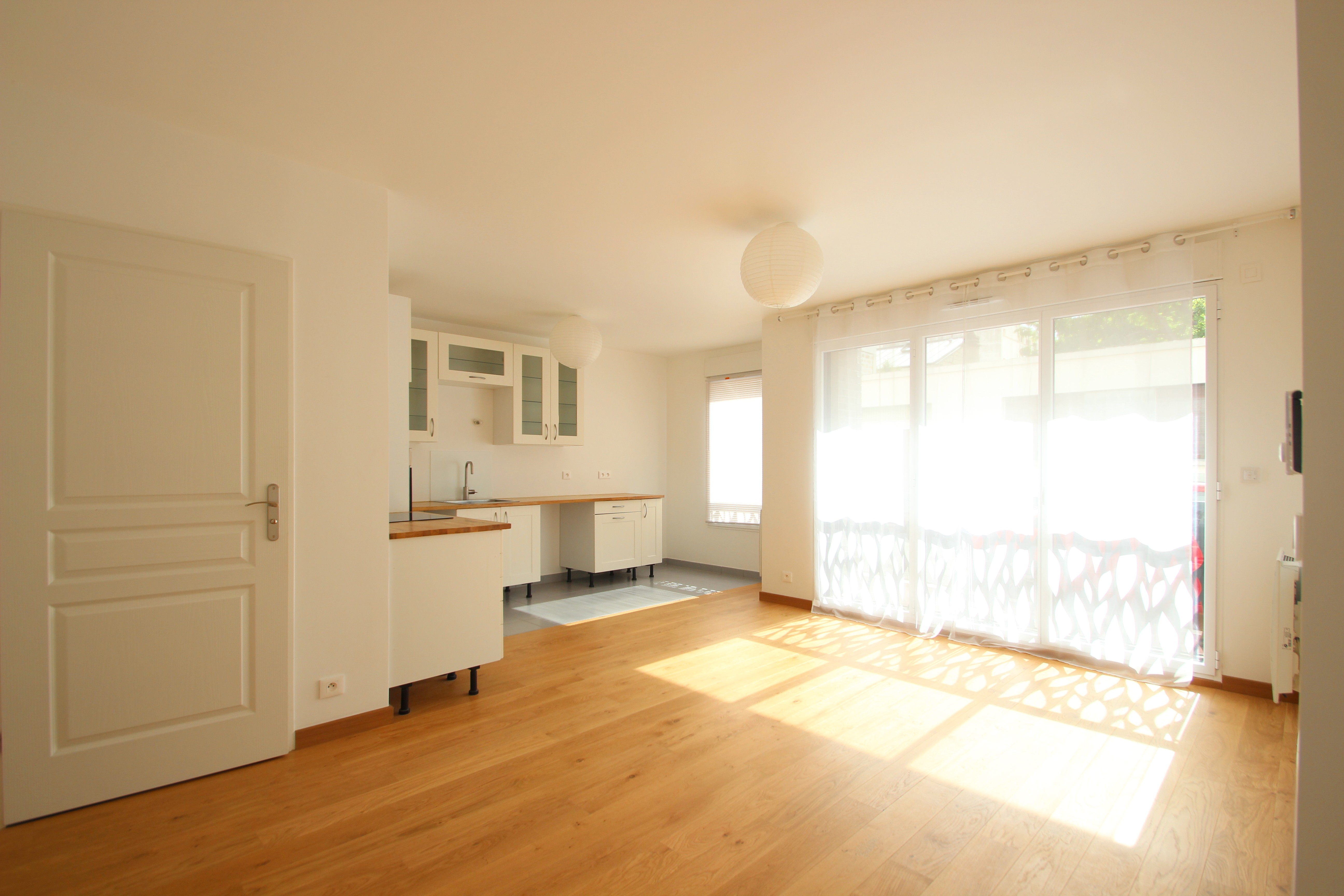 A ETE LOUE PAR NOTRE AGENCE - En plein cœur du centre-ville (à 3 min à pied du RER), au sein d'une résidence de standing de 2018, cet appartement de 45 m2 en rez-de-chaussée comprend une belle pièce à vivre de 28 m2 avec cuisine équipée, chambre de 12.3 m2 avec nombreux rangements, salle de douche avec wc, rangements.