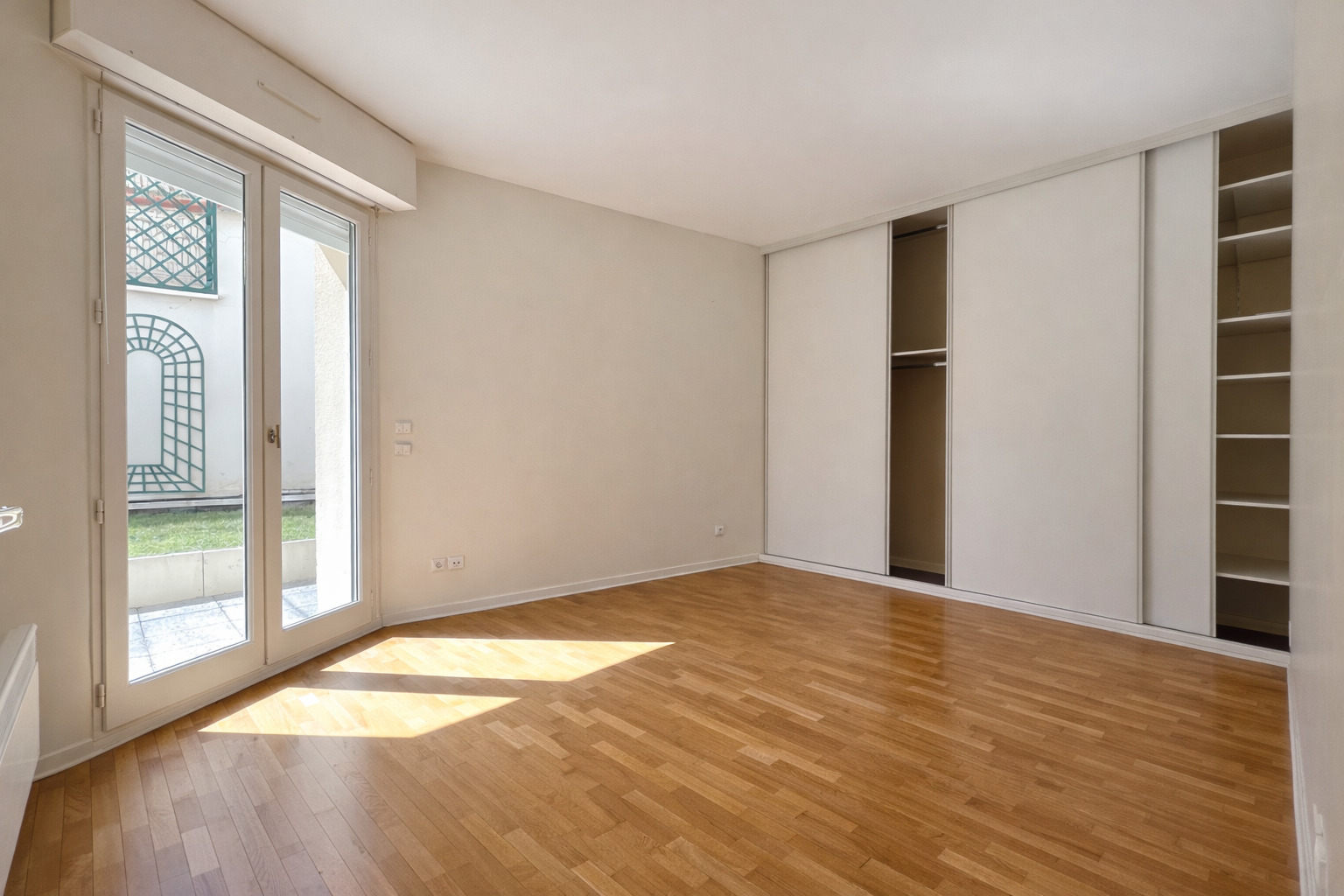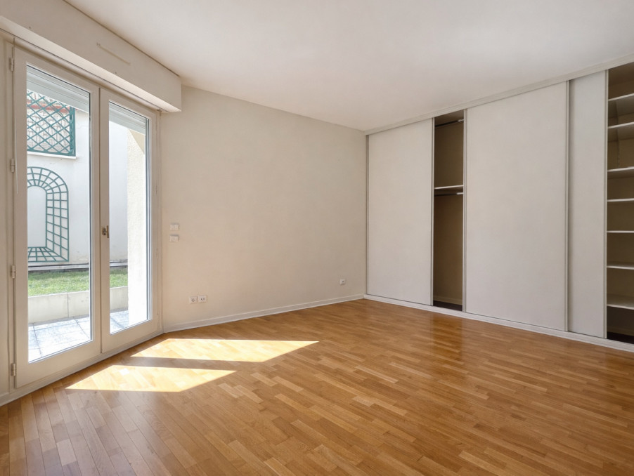 cet appartement 3 pièces de 70 m2 comprenant : Entrée avec placards, séjour donnant sur un jardin et terrasse privative Sud/Ouest, cuisine équipée, 2 chambres sur jardin, salle de bains, wc séparé, cave et parking en sous sol.
