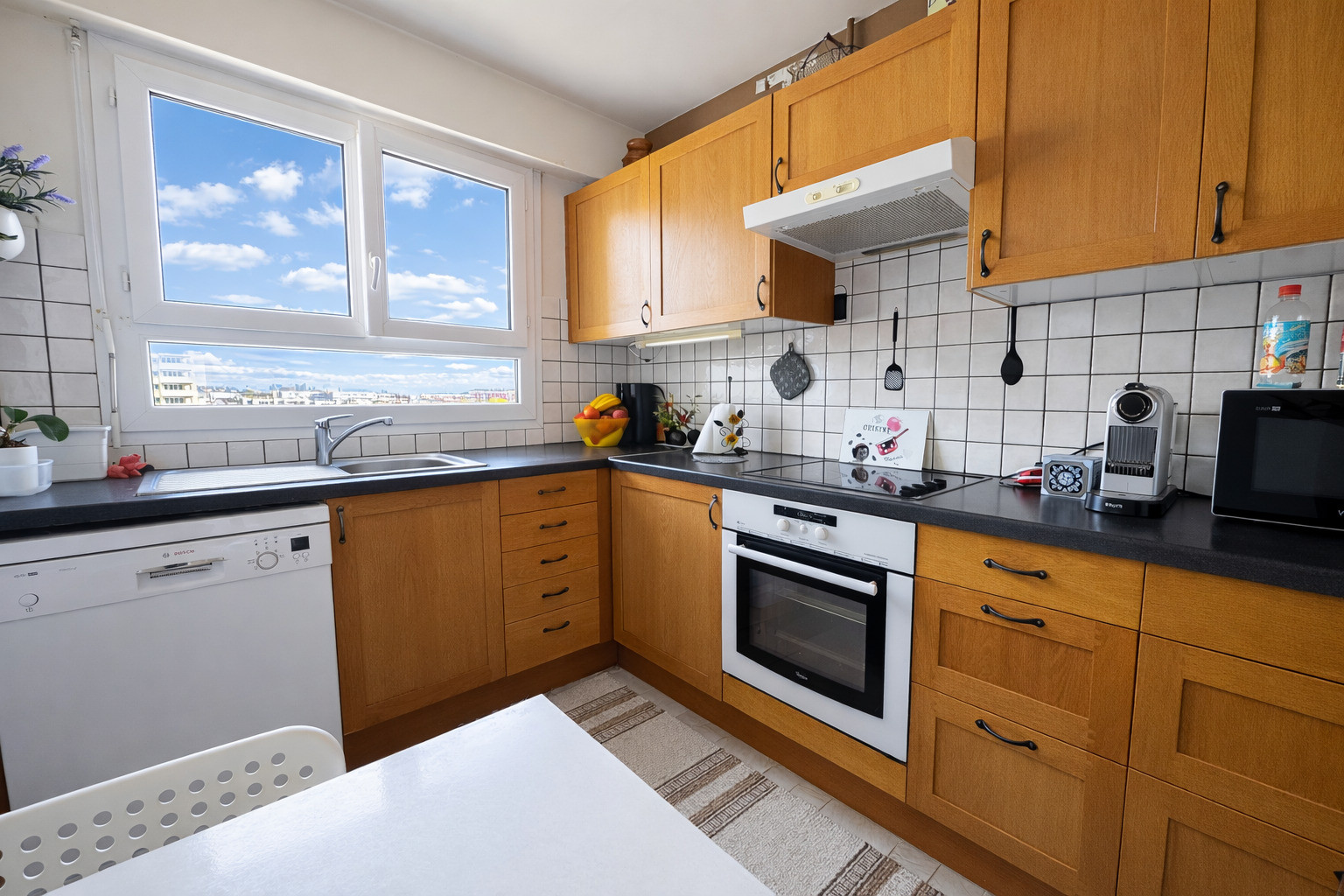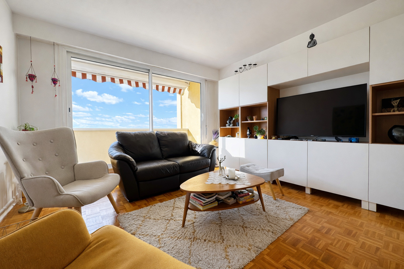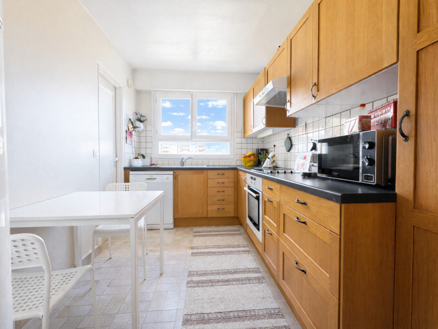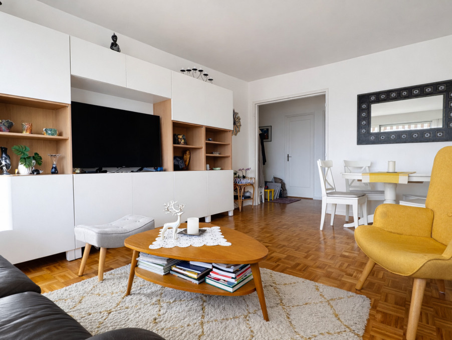 Il se compose d'une entrée avec rangements desservant un séjour donnant sur balcon avec une SUPERBE VUE dégagée sans vis à vis, cuisine séparée équipée avec grand cellier (rangements et emplacement machine à laver), 2 chambres de 11.3 m2 et 10.5 m2, dressing, salle de douche récente, wc séparé.