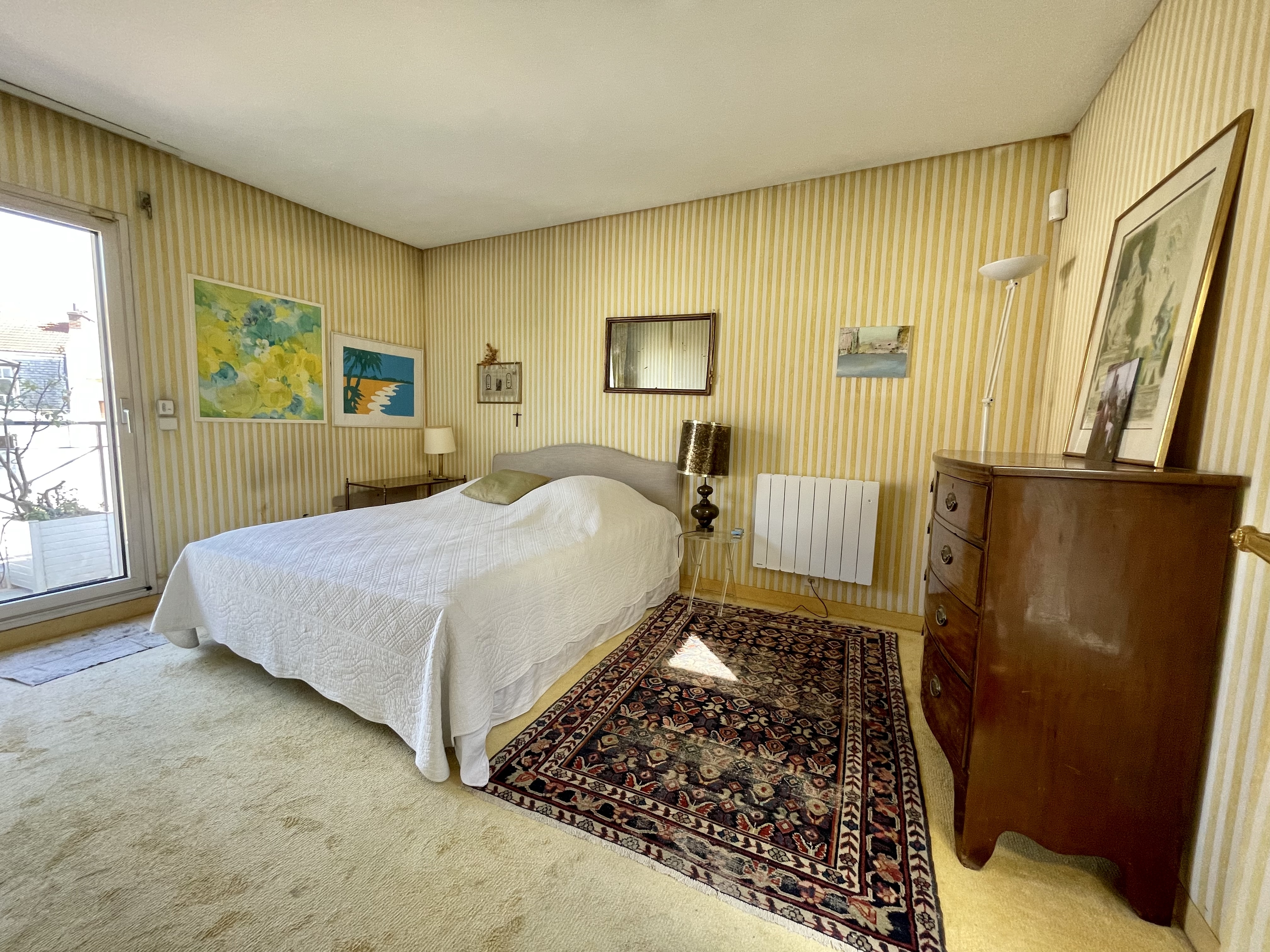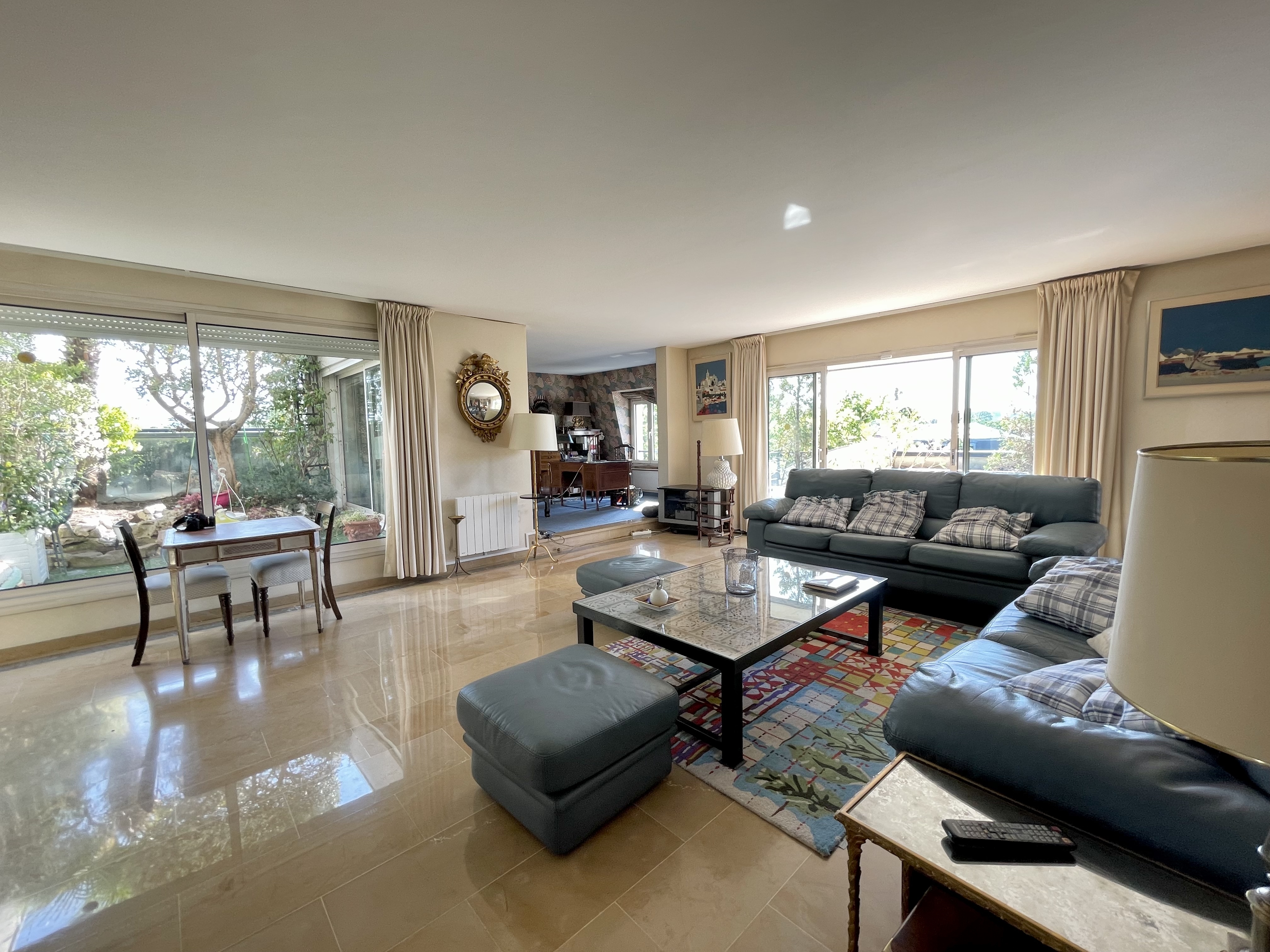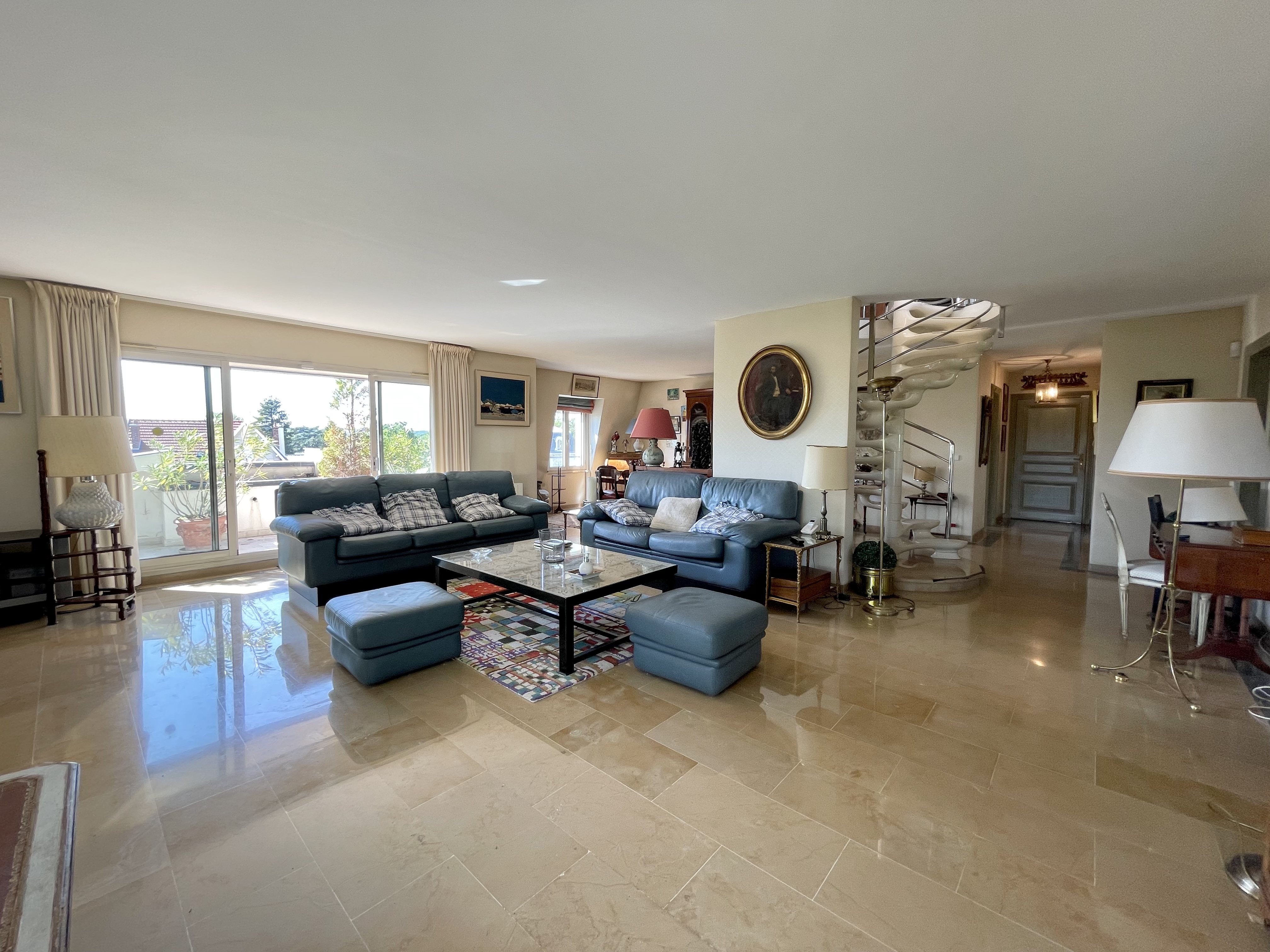 A quelques minutes à pied du RER Vésinet Centre et à proximité immédiate de la place du marché, situé en dernier étage d'un immeuble récent de grand standing, exceptionnel et unique appartement en duplex de 173m2 + 100 m2 de terrasses et balcons avec vue imprenable à 180 degrés. Appartement comprenant une entrée avec wc, grand dressing (ou bureau de 10m2), très belle réception 80m2 exposée sud et ouest sur patio et balcon, cuisine entièrement aménagée et équipée de 15 m2, 2 chambres en suite de 24 et 29 m2 (avec chacune salle de bains et wc), très bel escalier accédant à un espace couvert donnant sur une superbe terrasse de 55 m2 sans aucun vis-à-vis, espace repas sous une pergola électrique. 2 parkings (sous-sol et extérieur) et une cave complètent ce bien extrêmement rare.