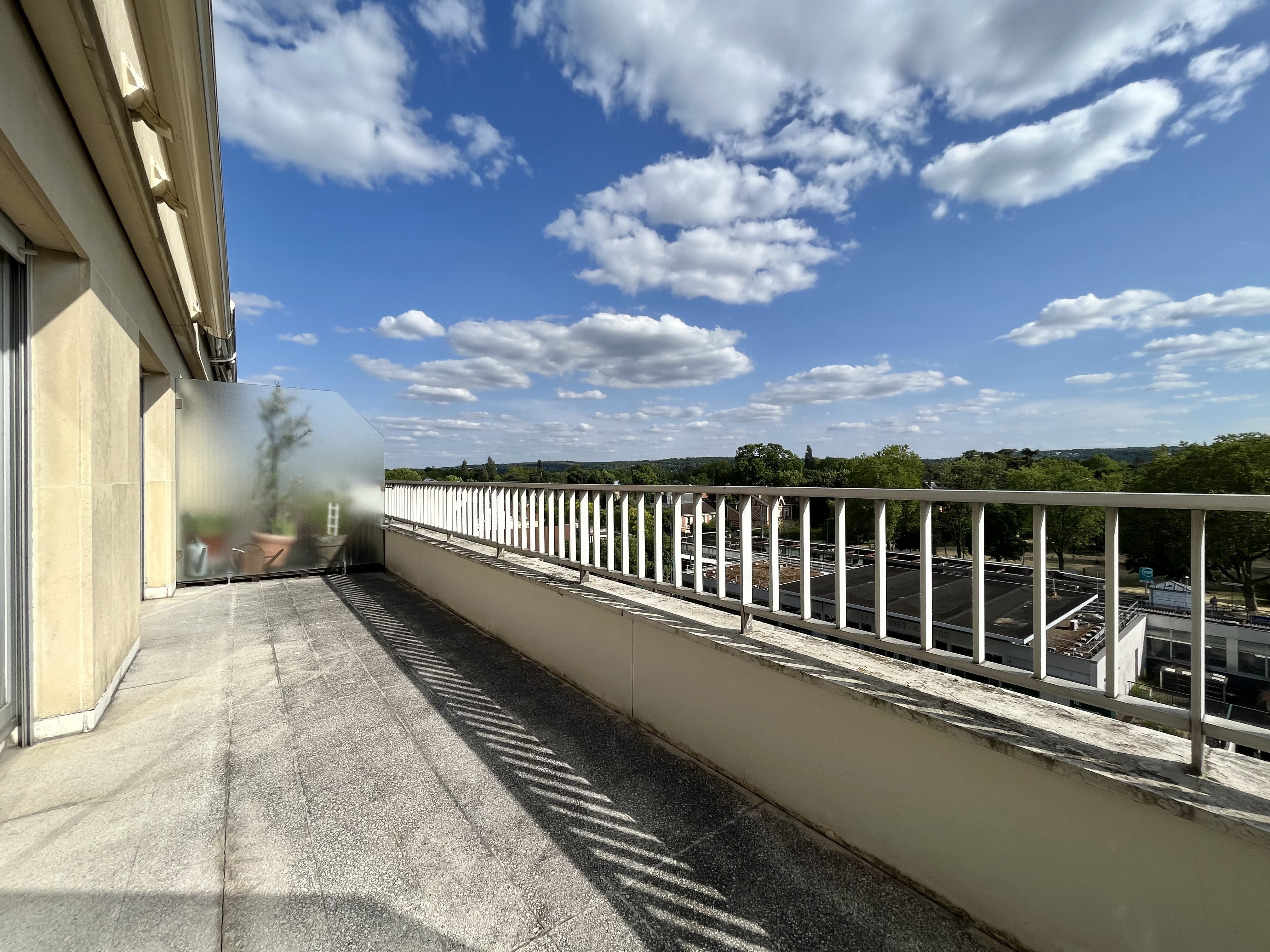 LE VESINET HYPER CENTRE - Au 4ème et dernier étage avec ASCENSEUR d'une résidence de standing au pied des commerces et du RER Vesinet centre, ce 3 pièces de 57 m2 comprend une entrée avec rangements desservant un double séjour de 26 m2 exposé sud avec accès sur une terrasse de 14 m2 (vue imprenable), cuisine sur balcon, chambre de 11m2 avec rangements, salle de bains et wc séparé. Une cave et un parking en sous-sol.
