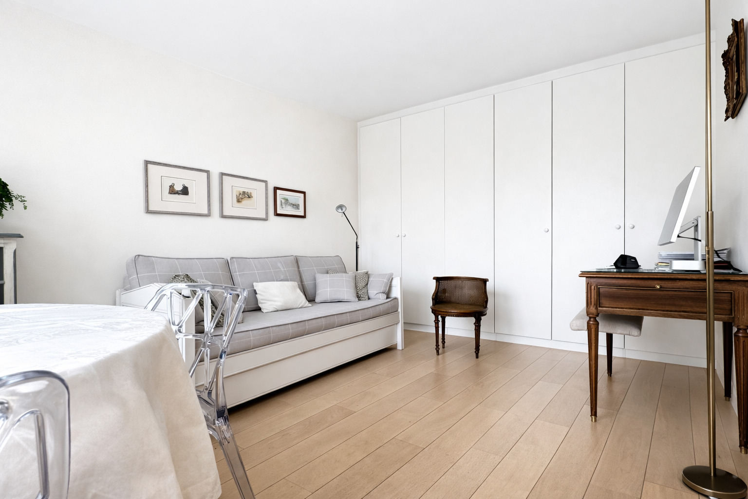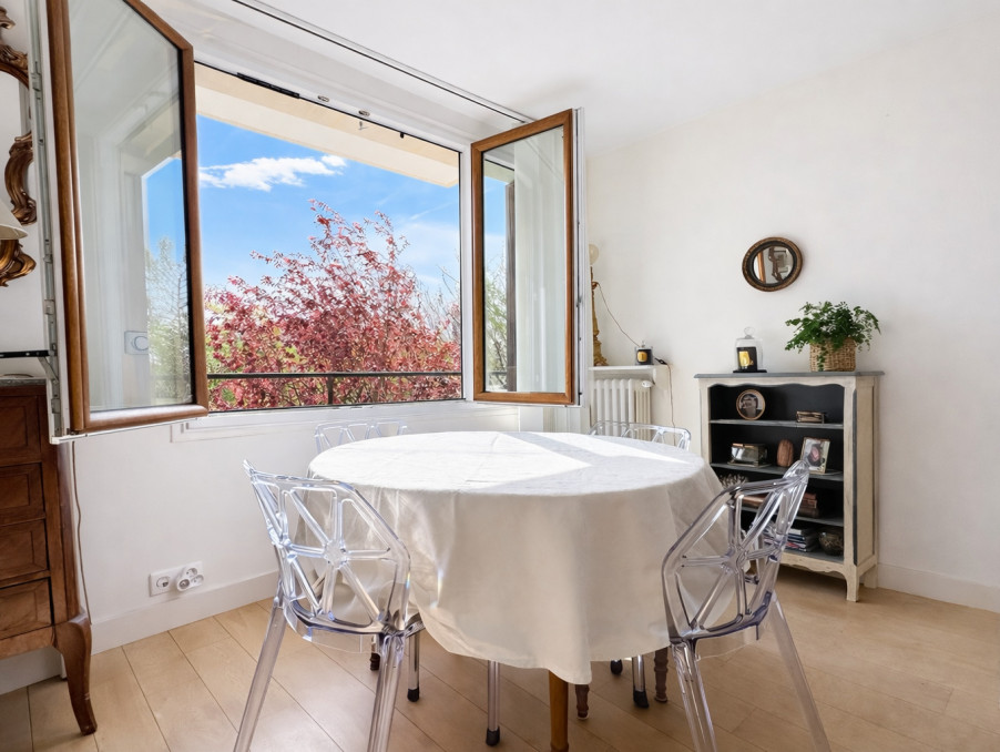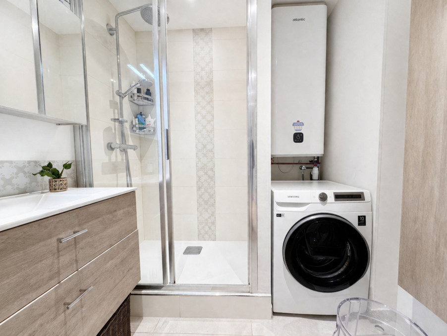 L'entrée avec rangements dessert un double séjour sur balcon exposé plein SUD avec espace bureau et rangements (anciennement séjour et chambre), cuisine séparée avec arrière cuisine, chambre, salle de douche avec ballon d'eau chaude individuelle et emplacement pour la machine à laver, wc indépendant, rangements.