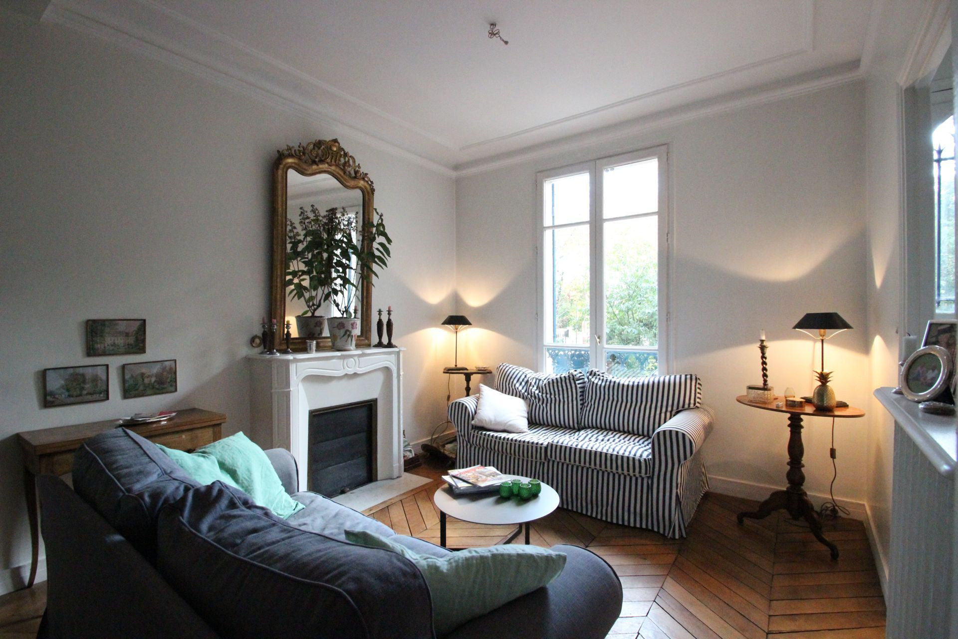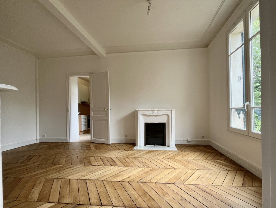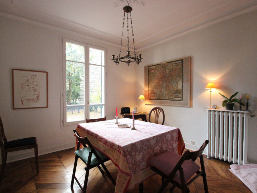 Pièce annexe de 10 m2 dans le jardin. Nombreux éléments de charme : moulures, parquet, cheminée...