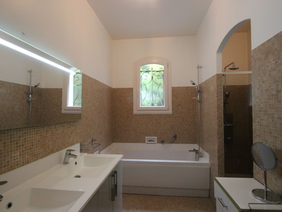 A ETE LOUEE PAR NOTRE AGENCE - Dans un cadre très résidentiel et au calme le plus total, agréable maison de 225 m² sur 1100 m2 comprenant: grande entrée, séjour de 56 m² donnant de plain pied sur terrasse, cuisine aménagée et équipée, suite parentale avec dressing, salle de bains / douche de 25 m², WC/vestiaire.