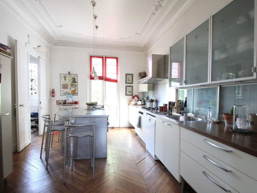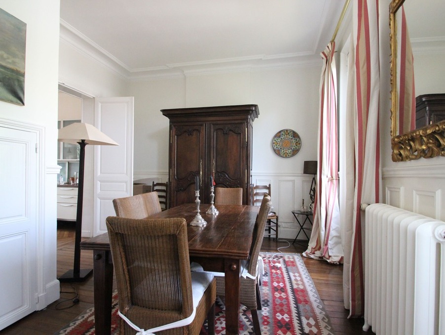 SEUL MANDATAIRE Au cœur du centre ville à 3' du RER et des commerces au calme absolu cette maison du 19ème siècle se compose d'une très belle réception en L de 65 m2, cuisine équipée ouverte 20 m2, dans les étages 5 grandes chambres, 3 salles de bains.