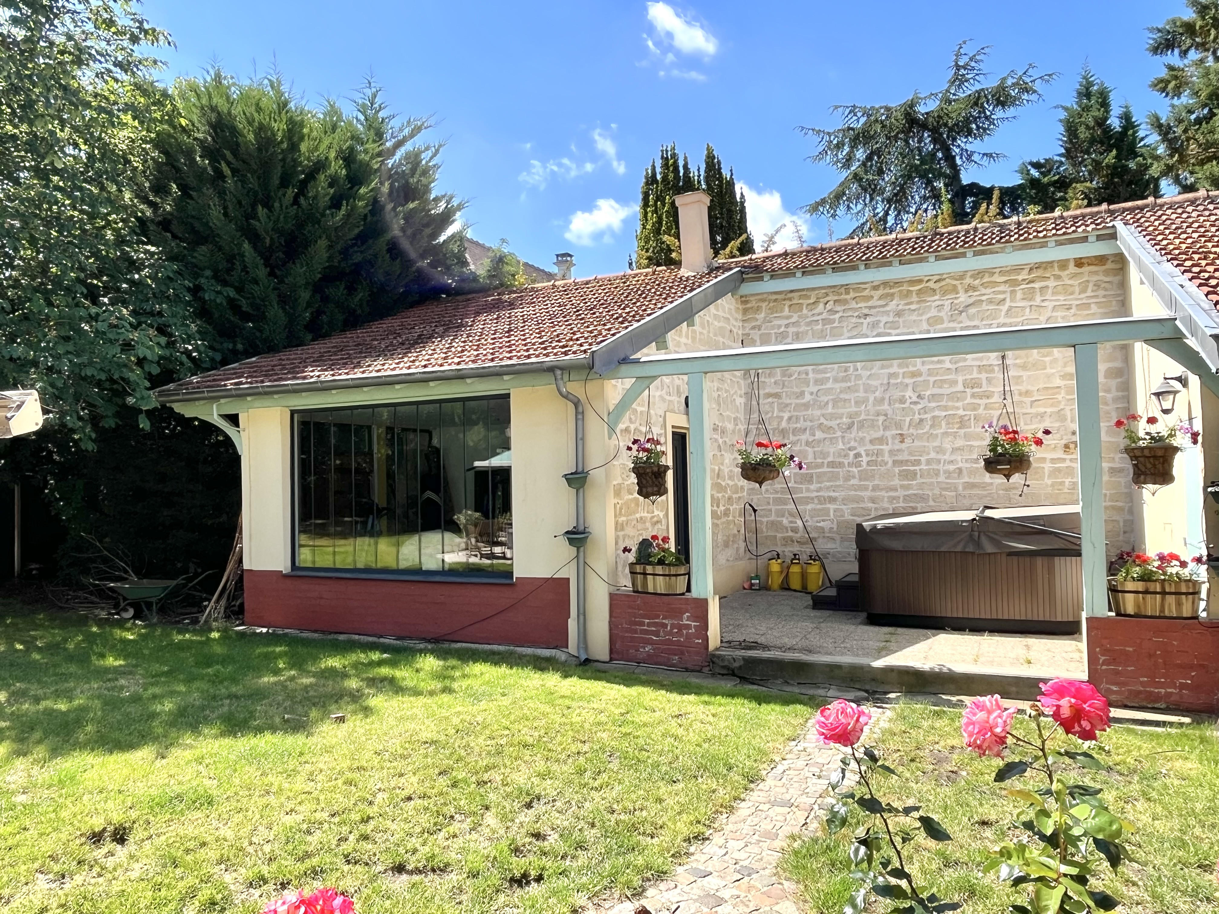 Edifiée sur un terrain de plus de 1430 m2 PARFAITEMENT CLOS, cette maison LUMINEUSE comprend une entrée avec rangements desservant 43 m2 de réception donnant de plain-pied sur terrasse et jardin, grande cuisine avec office de 33 m2 (possibilité d'ouvrir entre la cuisine et l'office pour faire une superbe cuisine dinatoire) , belle suite parentale avec sa salle de bains privative, chambre ou bureau de 11 m2, wc indépendant, rangements.