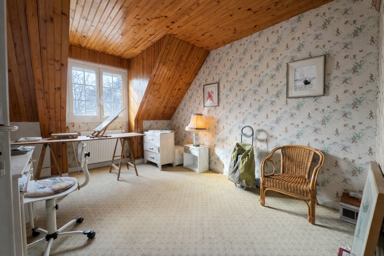 Le palier de l'étage dessert 3 chambres, salle de douche, wc, dressing et un grenier sur le même niveau qui pourrait permettre la création d'une autre salle de bains.