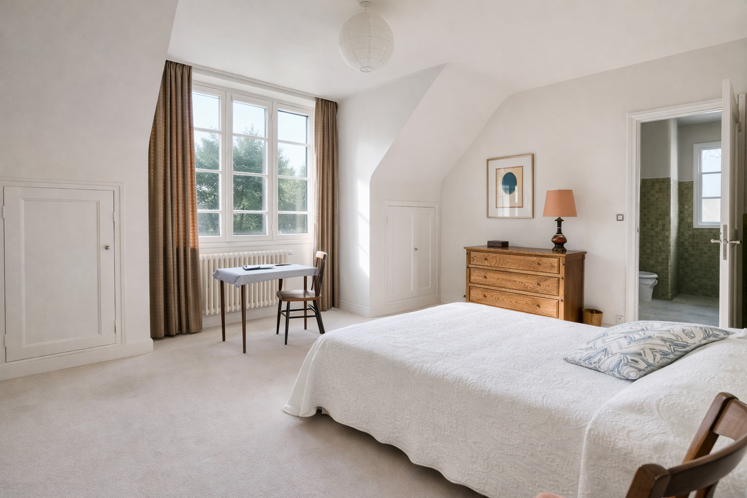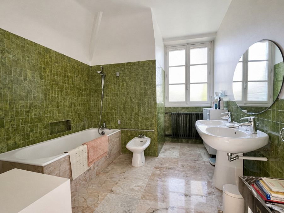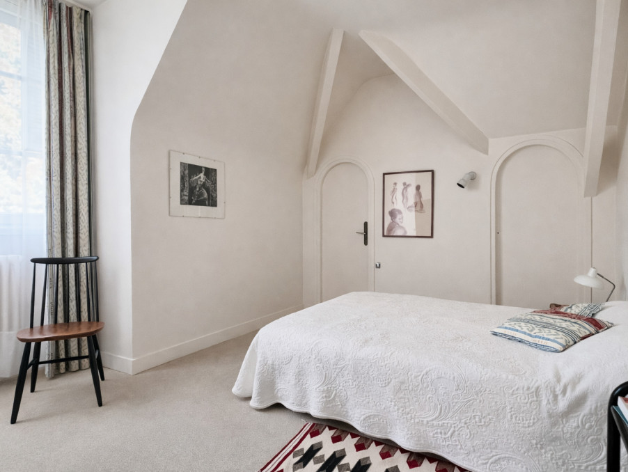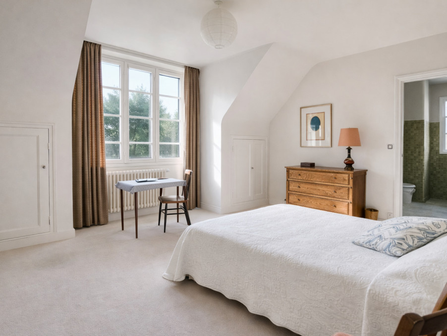 Au 1er étage, le palier distribue une belle suite parentale de 25 m2 (chambre et salle de bains)