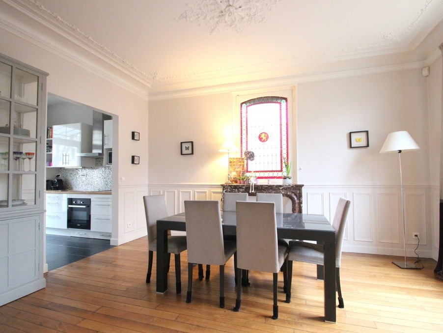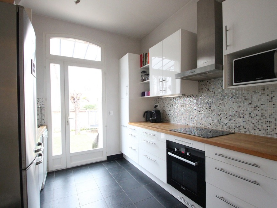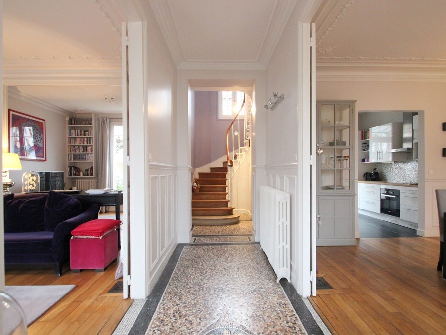 Située dans le centre-ville et à seulement 3 min à pied du RER et des commerces, cette maison de charme de la fin du 19eme siècle (entièrement rénovée), d'une surface de 180 m2, comprend : au rez-de-chaussée une entrée desservant un salon avec cheminée de 28 m2, grande salle à manger ouverte sur une cuisine aménagée. Au 1er étage : le palier dessert 2 grandes chambres (17 et 25 m2) avec de nombreux rangements, petite chambre ou bureau de 9 m2, salle de bains, wc indépendant. Au 2nd étage : 3 chambres, espace ouvert servant de rangements ou de petite salle de jeux pour les enfants, salle de bains, wc. Le sous-sol est total et comprend une buanderie, chaufferie avec chaudière gaz à condensation, cave à vin, grande pièce de rangements.