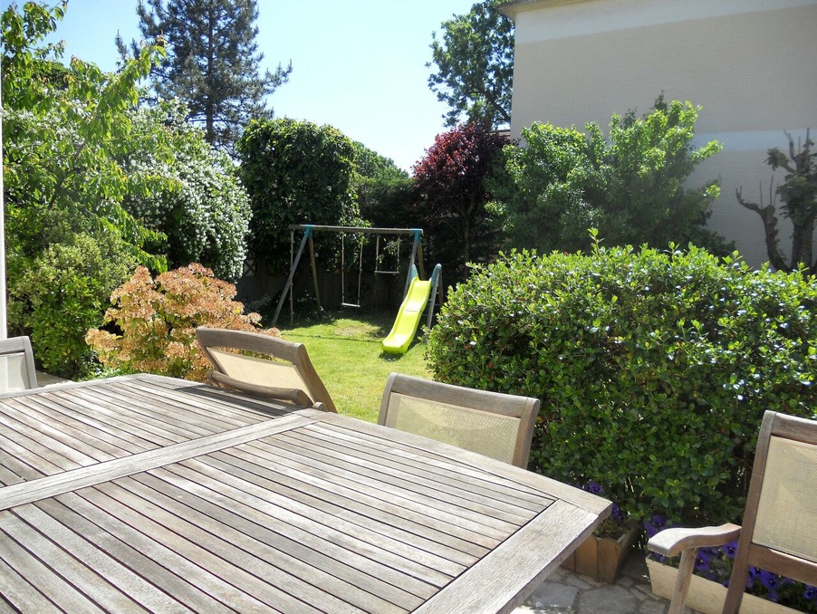 A 12' à pied de la gare Vésinet Le Pecq et très proche des écoles primaire et maternelle, cette maison des années 40 en très bon état général de 130 m2 sur 495 m2 de terrain comprend au rez-de-chaussée une entrée, 3 pièces de réception formant un ensemble de 50 m2 (salon, salle à manger, bureau), cuisine aménagée et équipée avec accès terrasse, wc. L'étage se compose d'une suite parentale avec dressing et salle de bains récente (l'ensemble fait 25 m2) et de 3 chambres d'enfants se partageant une salle de douche avec wc. Sous-sol partiel comprenant une buanderie avec accès extérieur, chaufferie, 2 pièces de stockage. Vide sanitaire sous le reste de la maison. Garage en annexe dans le jardin. La maison est en très bon état général.