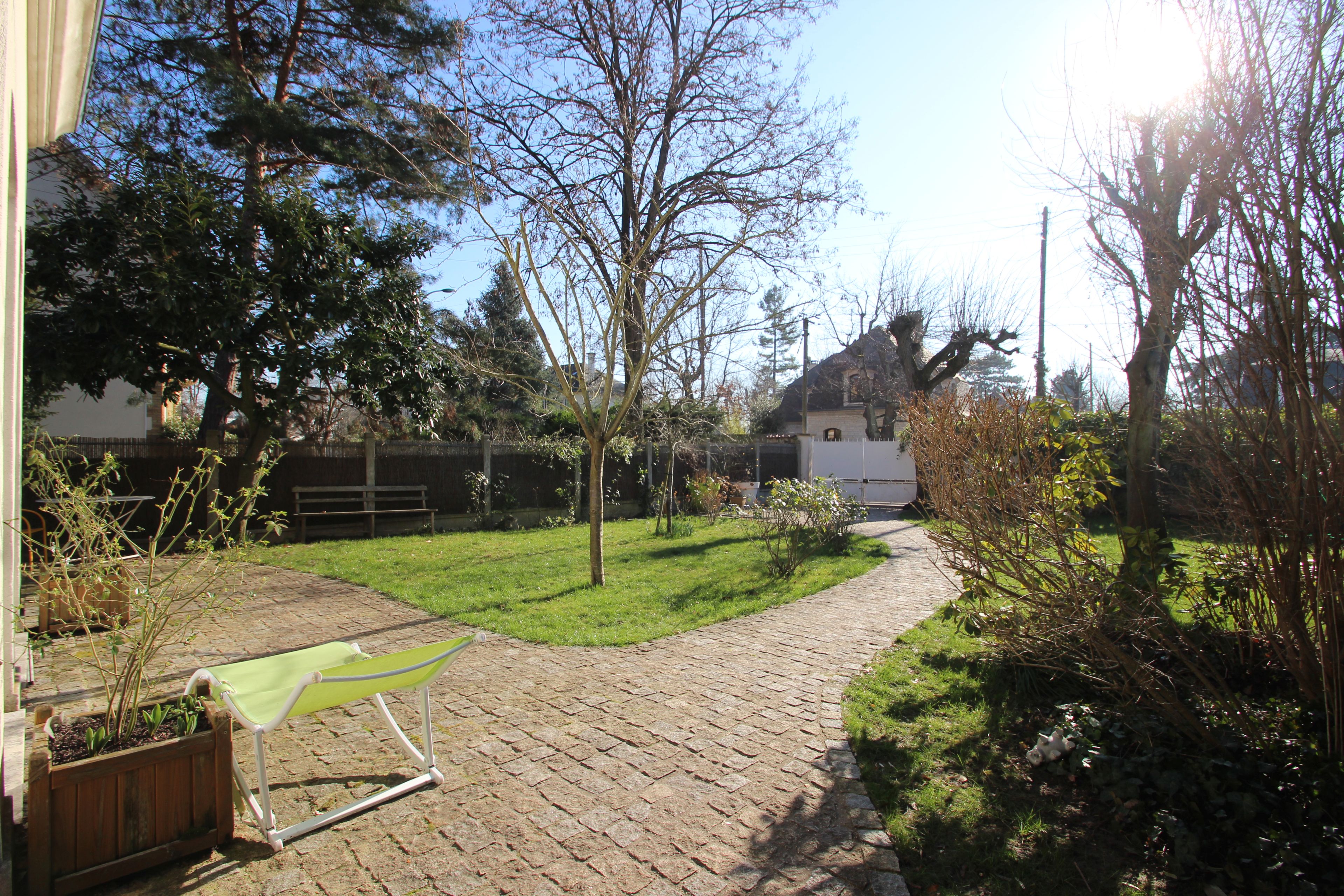 Terrain de 500 m2. Abris pour vélos au fond du jardin.