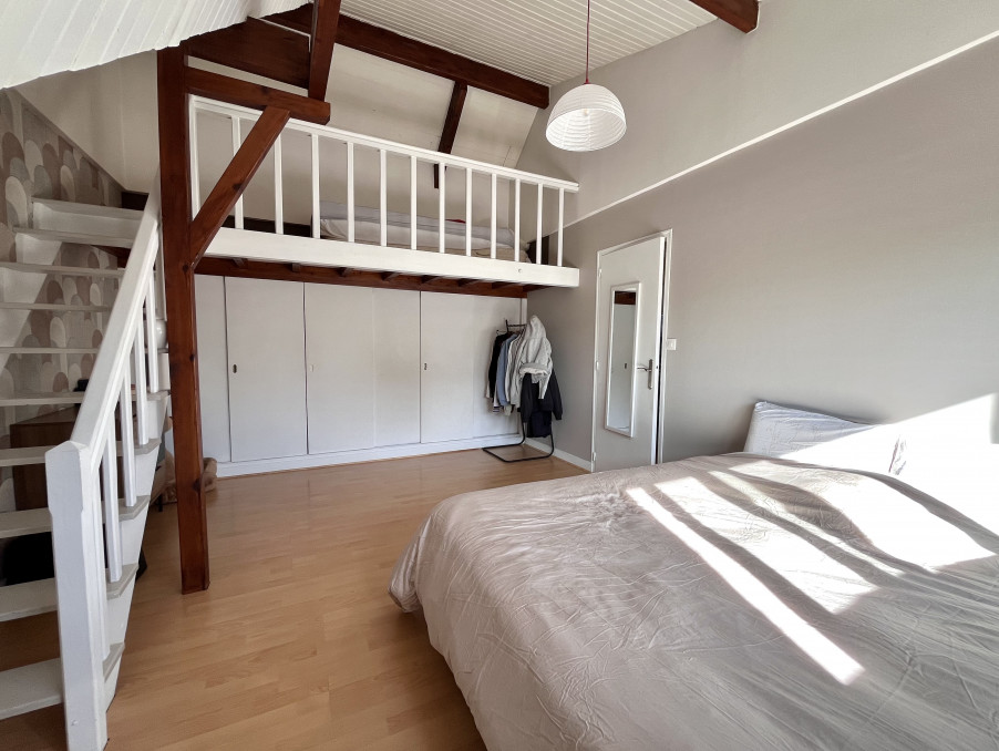 A l'étage : un palier desservant 4 chambres dont une grande chambre avec une mezzanine et des espaces de rangement, une salle de douche à l'italienne, un wc.